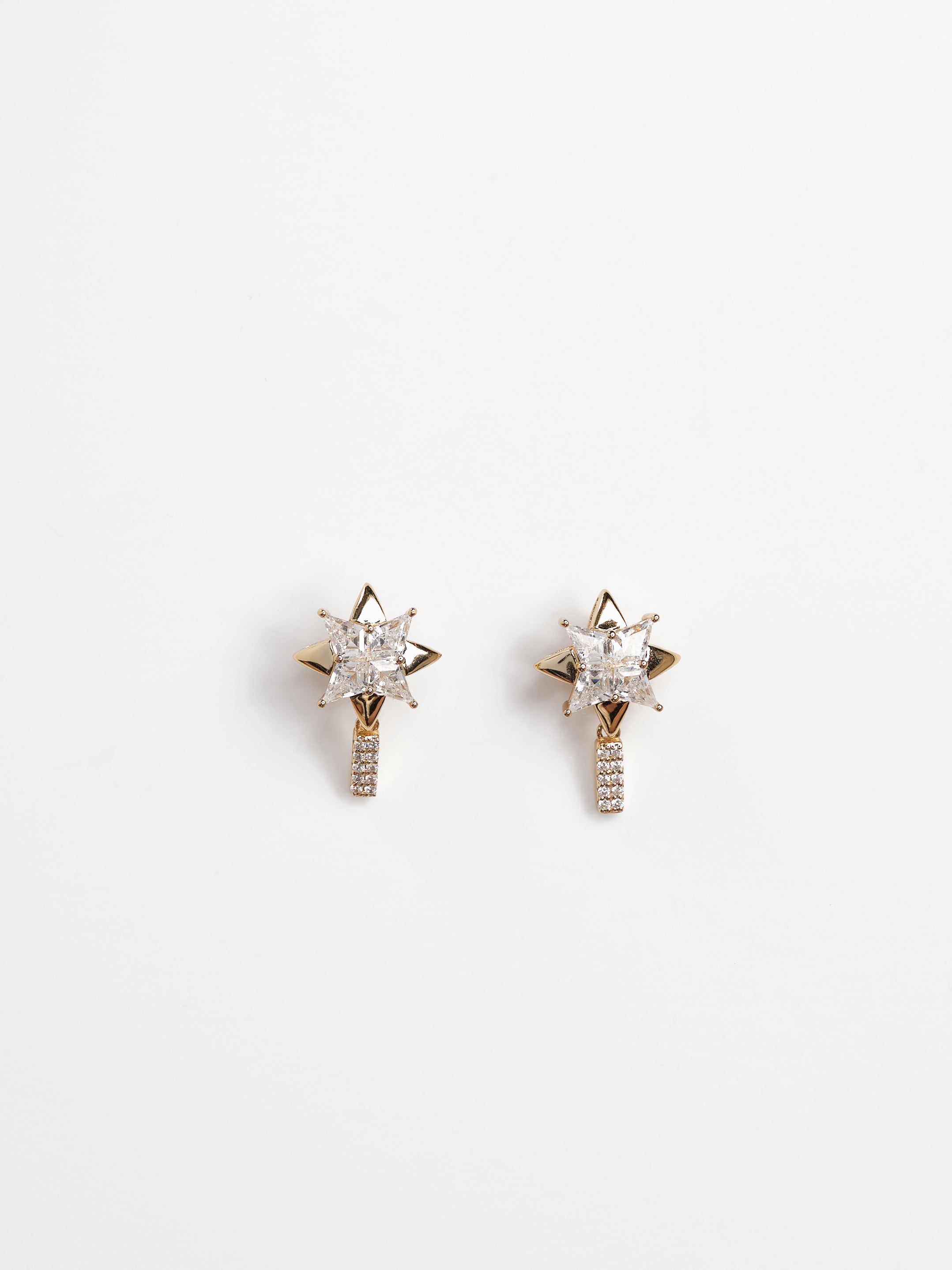Diamond and Gold Star with Pavé Diamond Drop Earrings