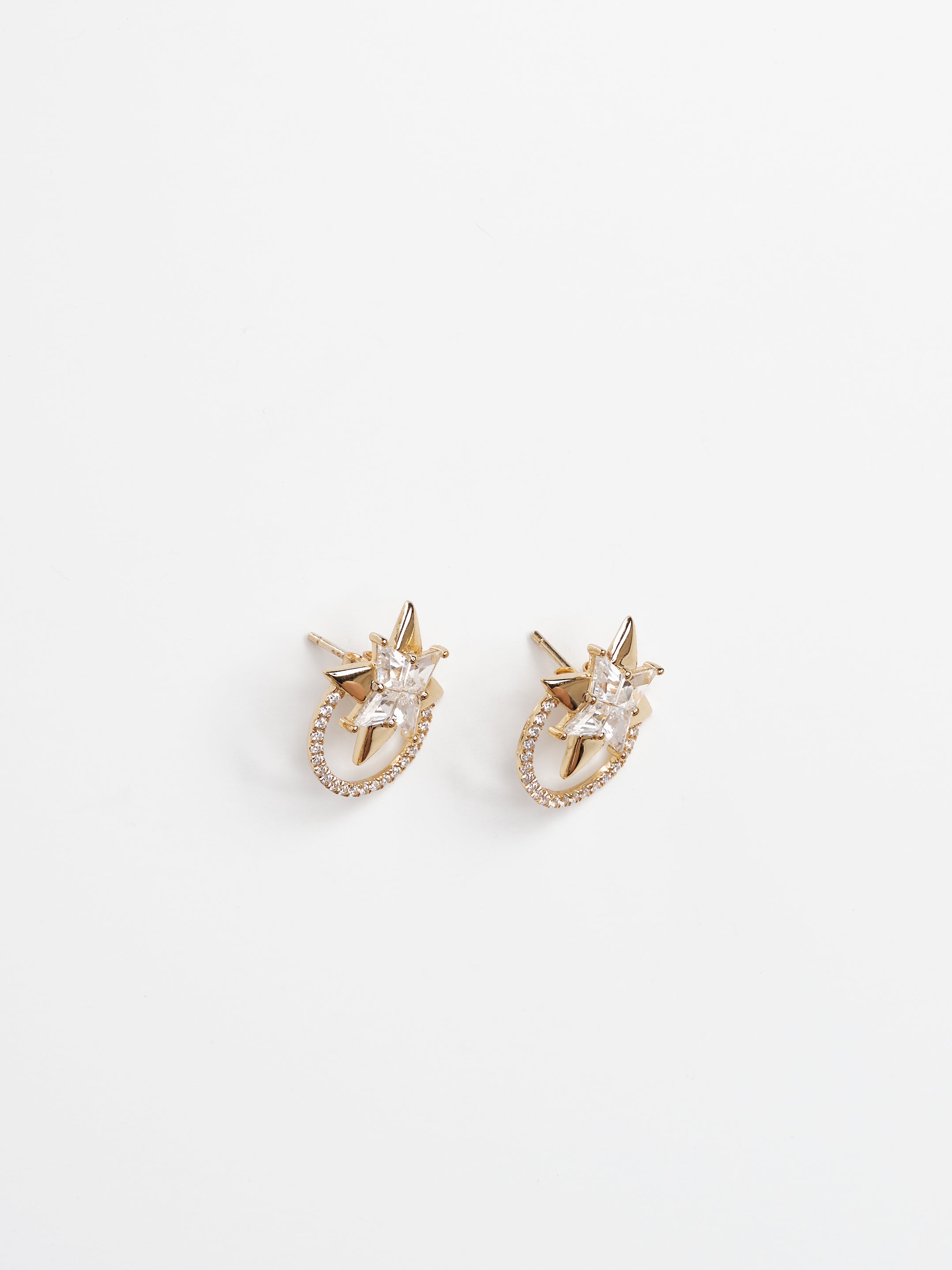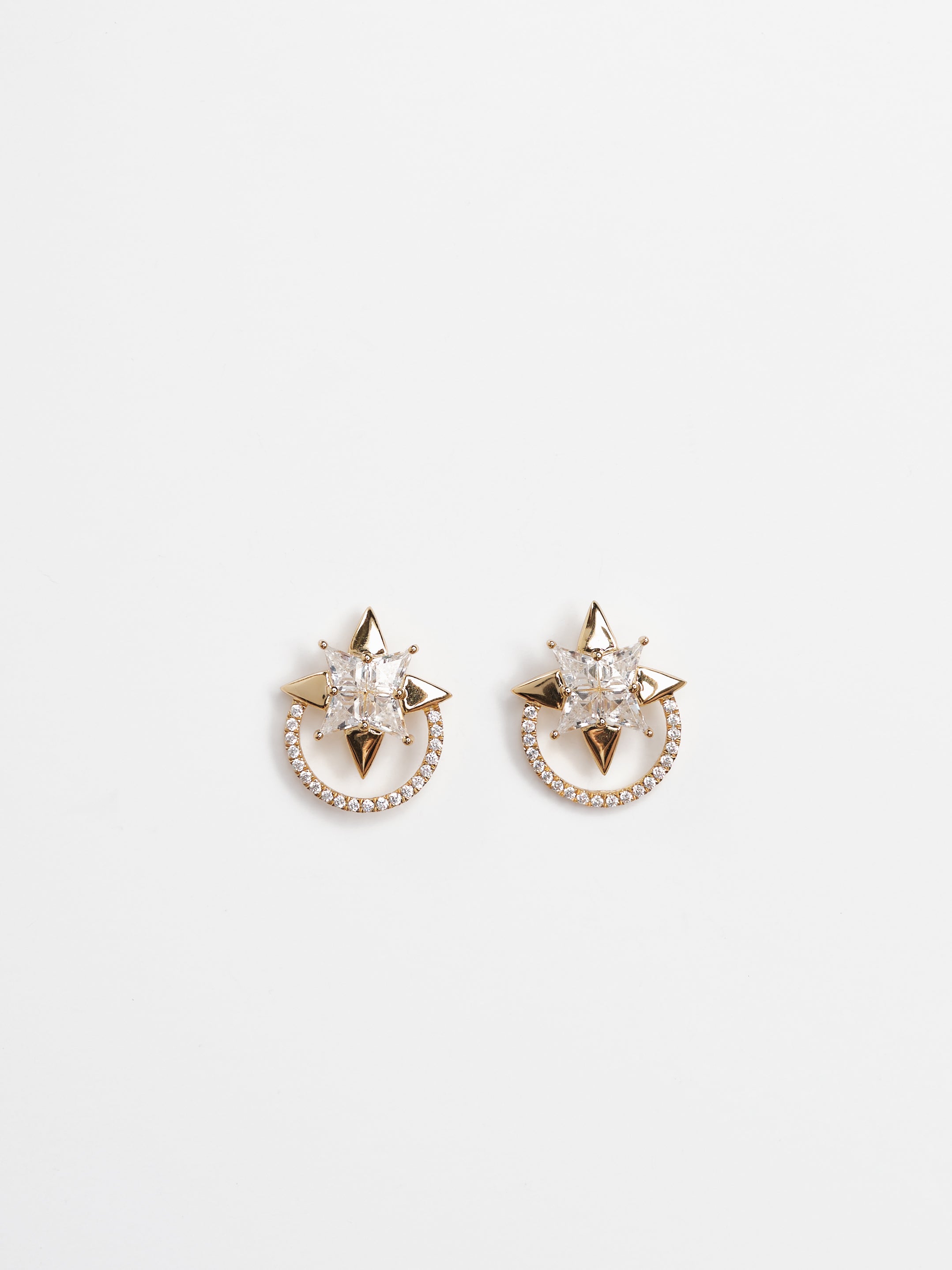 Diamond and gold halo earrings featuring the signature 11 Juillet Éclat de Joie star-shaped motif and a diamond-studded halo.