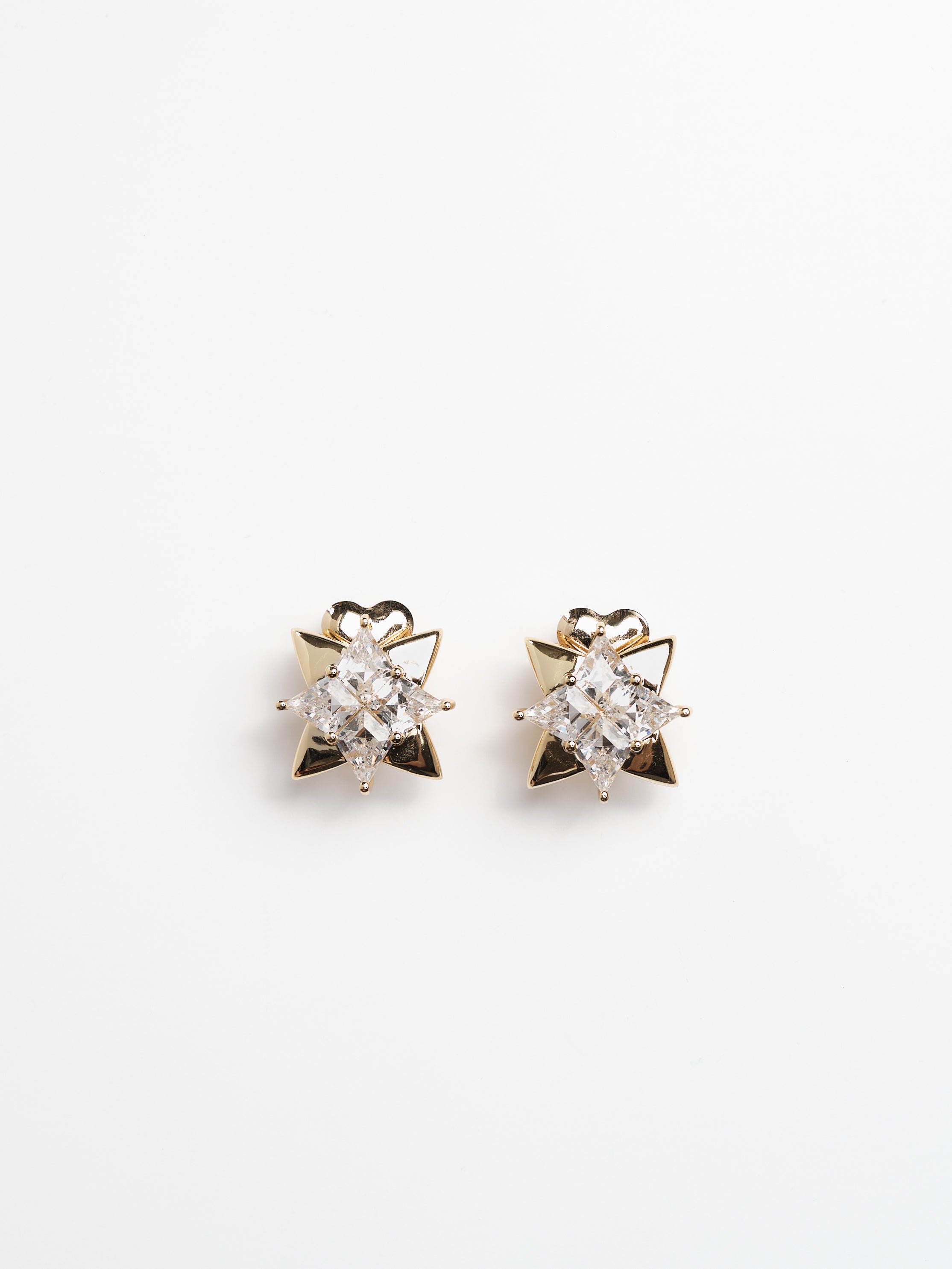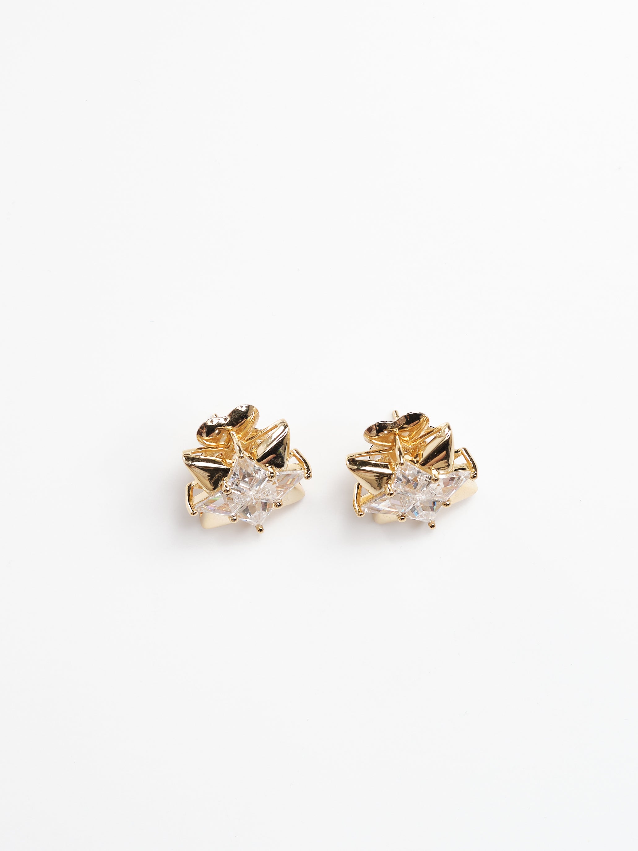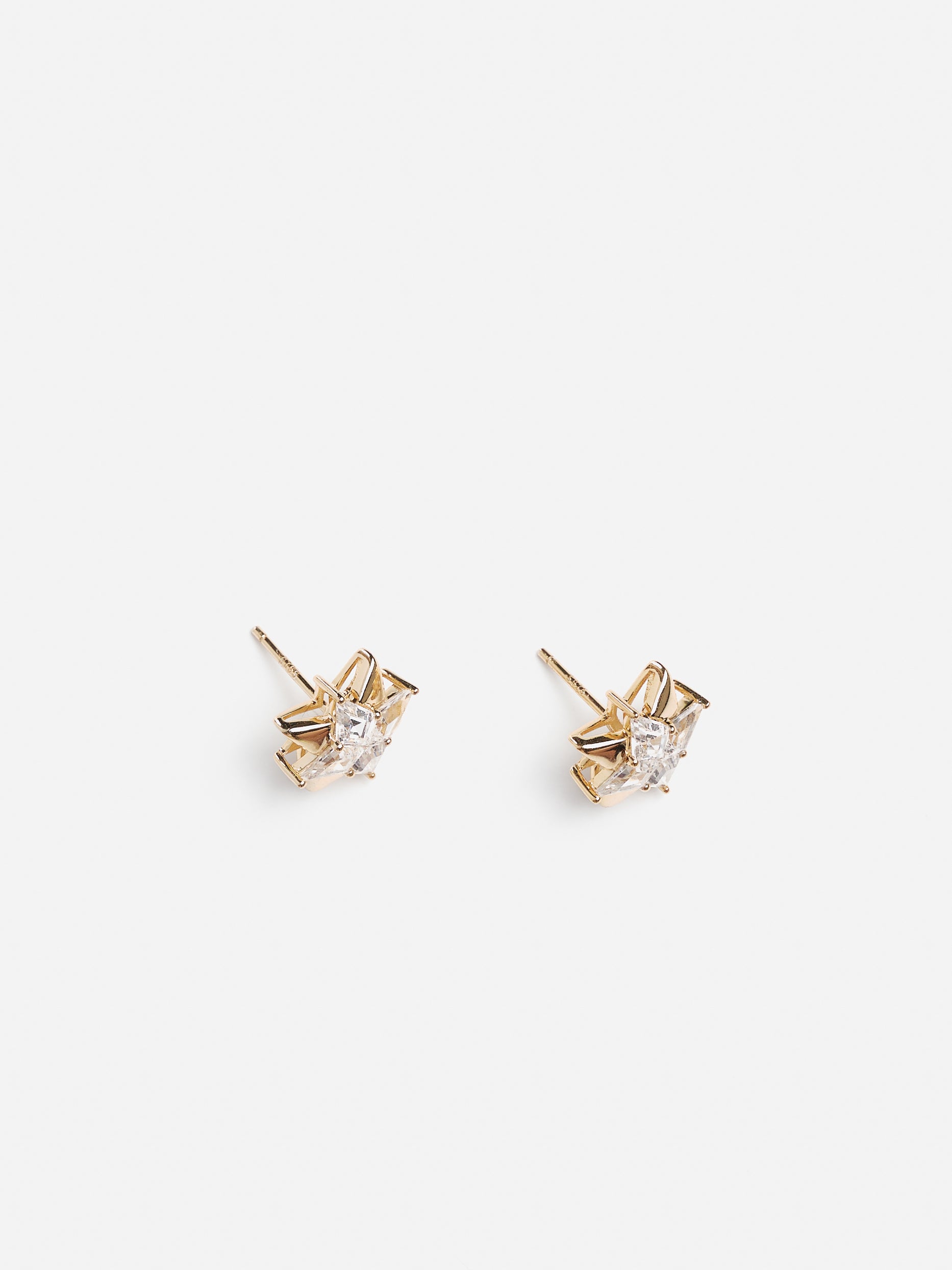 Diamond and gold star earrings featuring the signature 11 Juillet Éclat de Joie star-shaped motif.