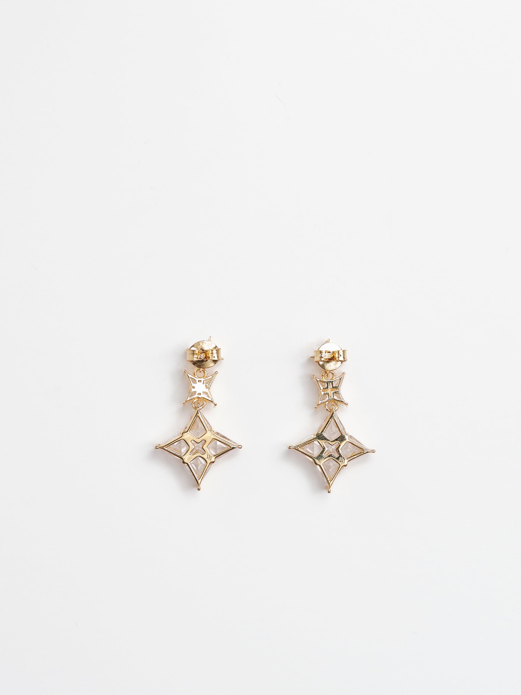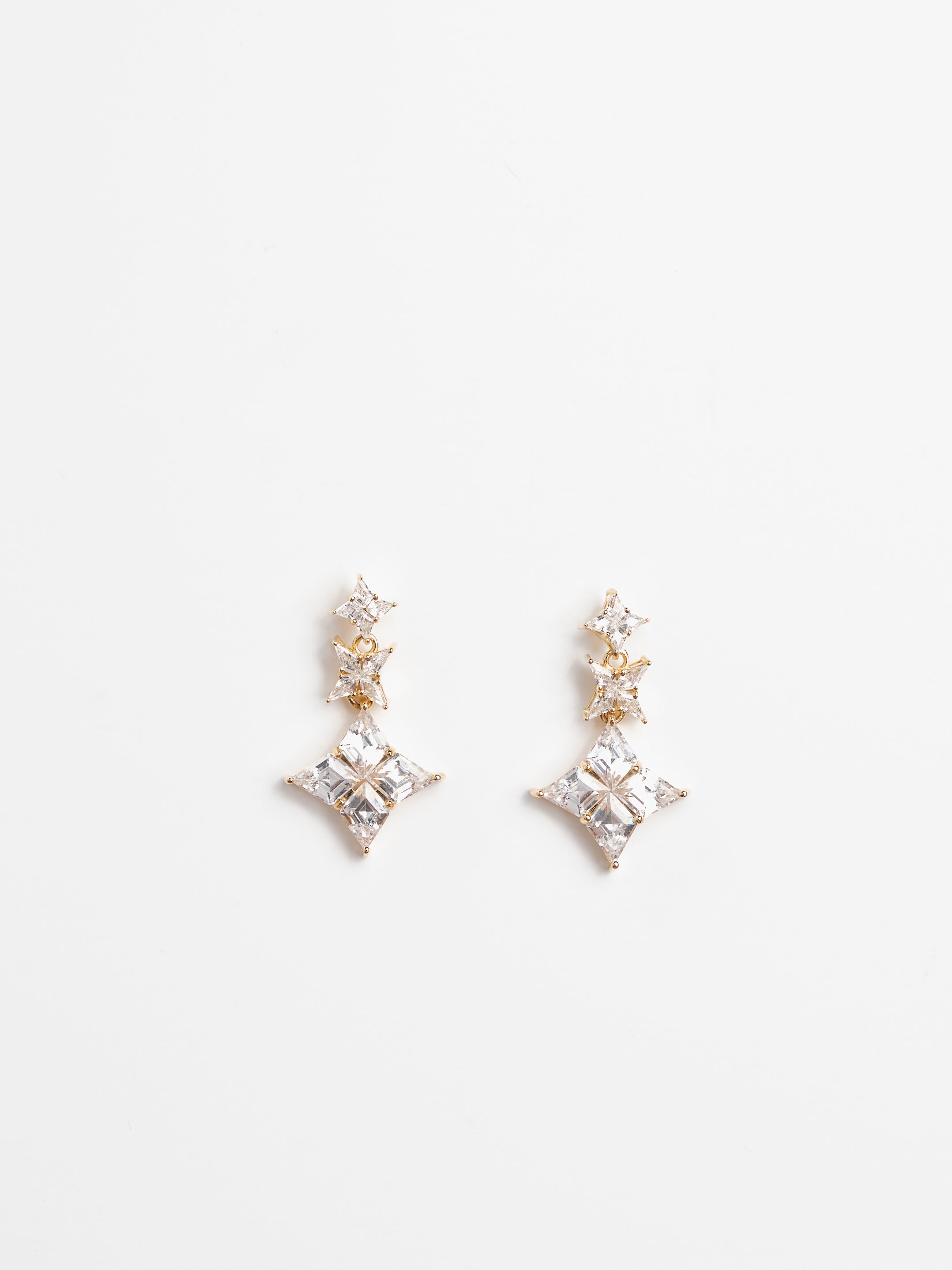 Elegant diamond star chandelier earrings featuring three signature 11 Juillet Éclat de Joie star-shaped motifs.