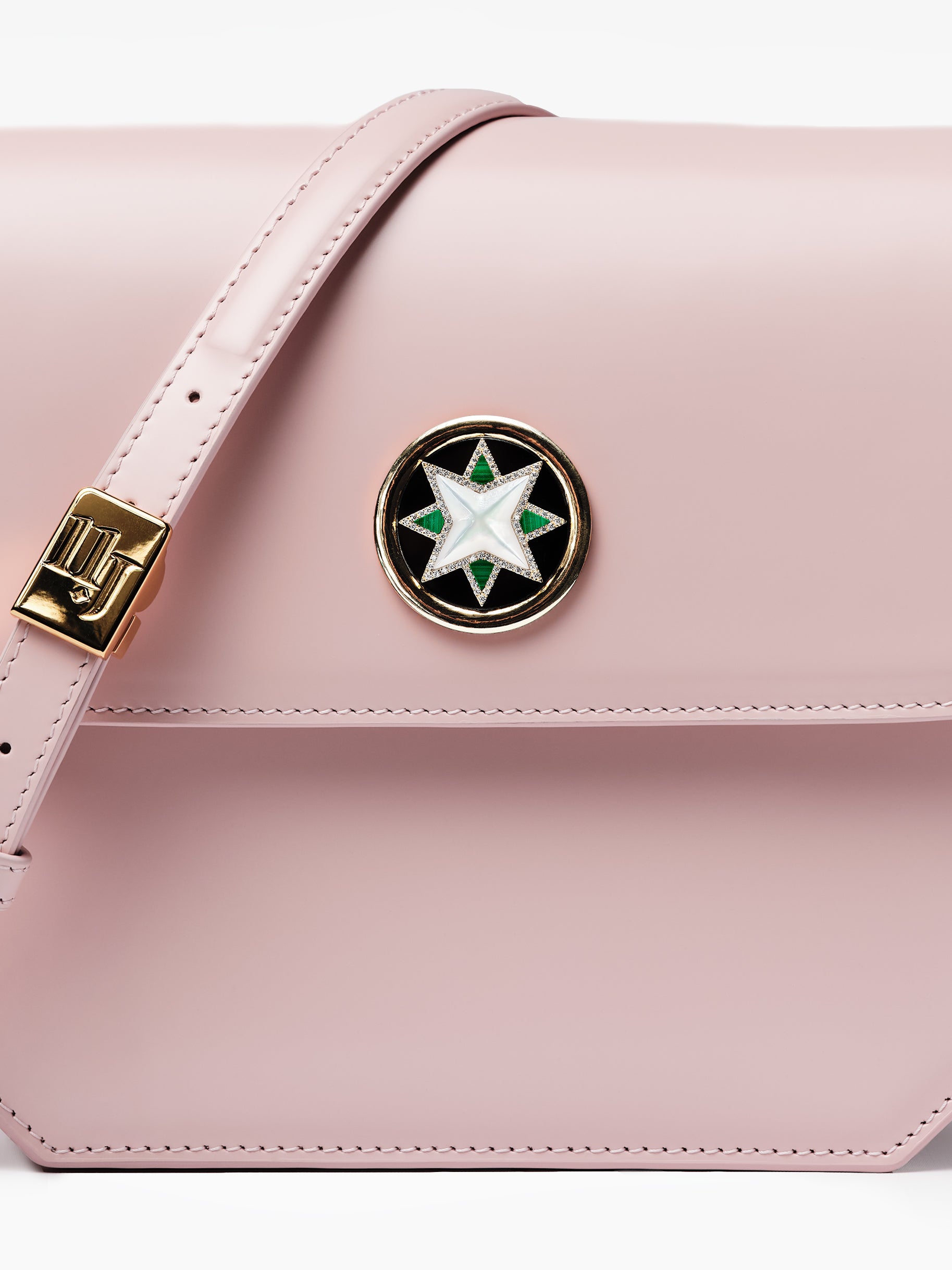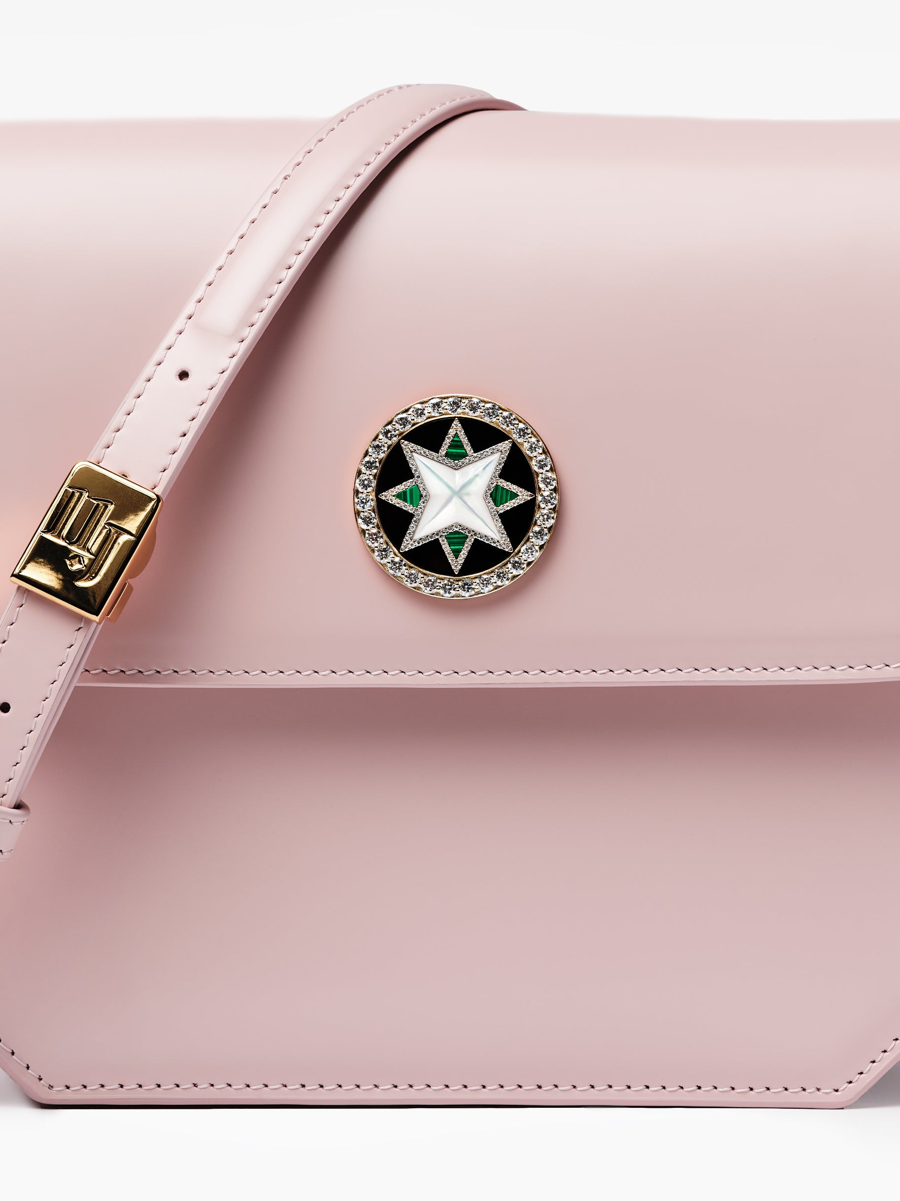 - Diamond embellished snap closure