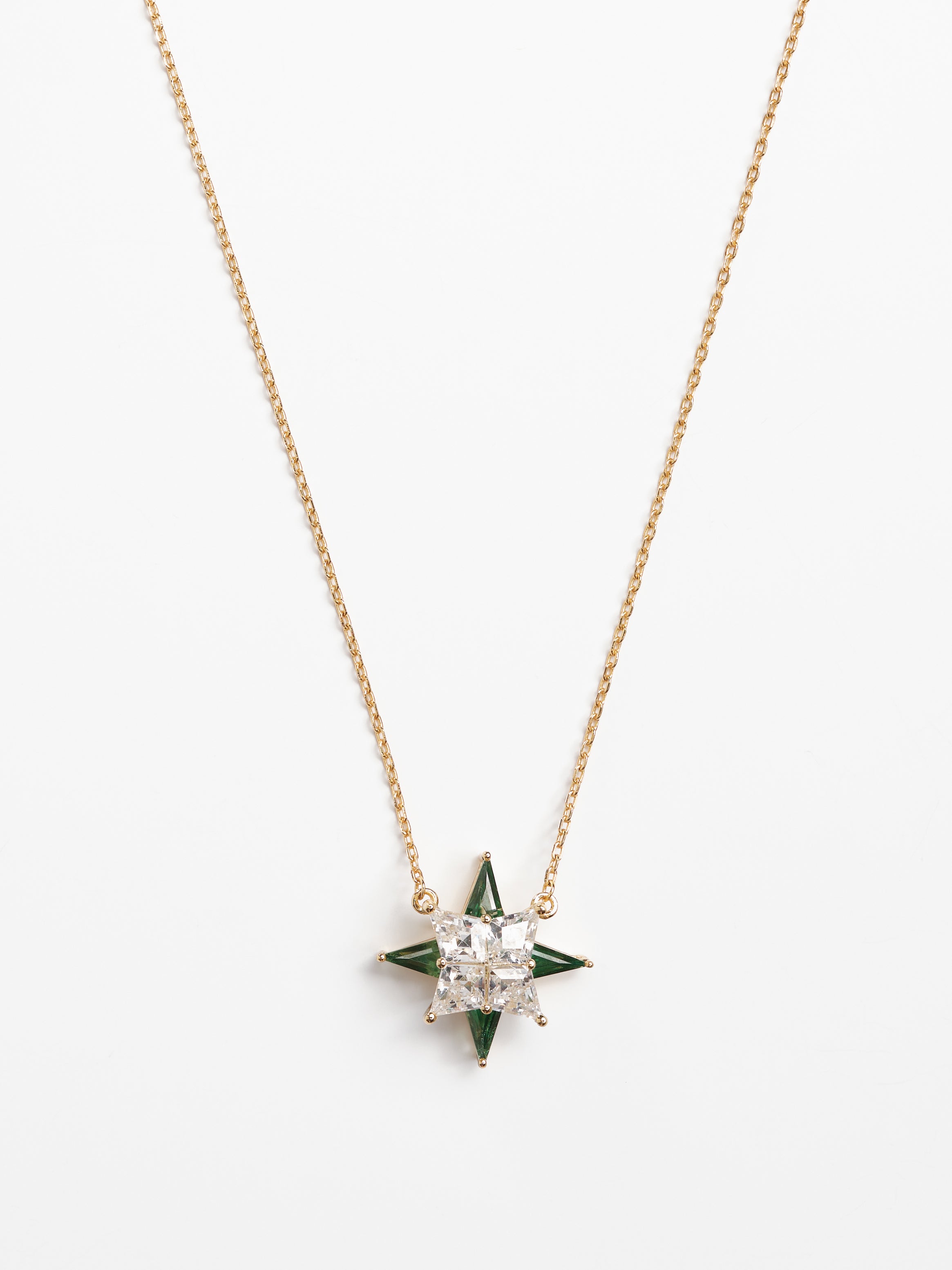 Diamond and emerald star pendant necklace featuring the signature 11 Juillet Éclat de Joie star-shaped motif.