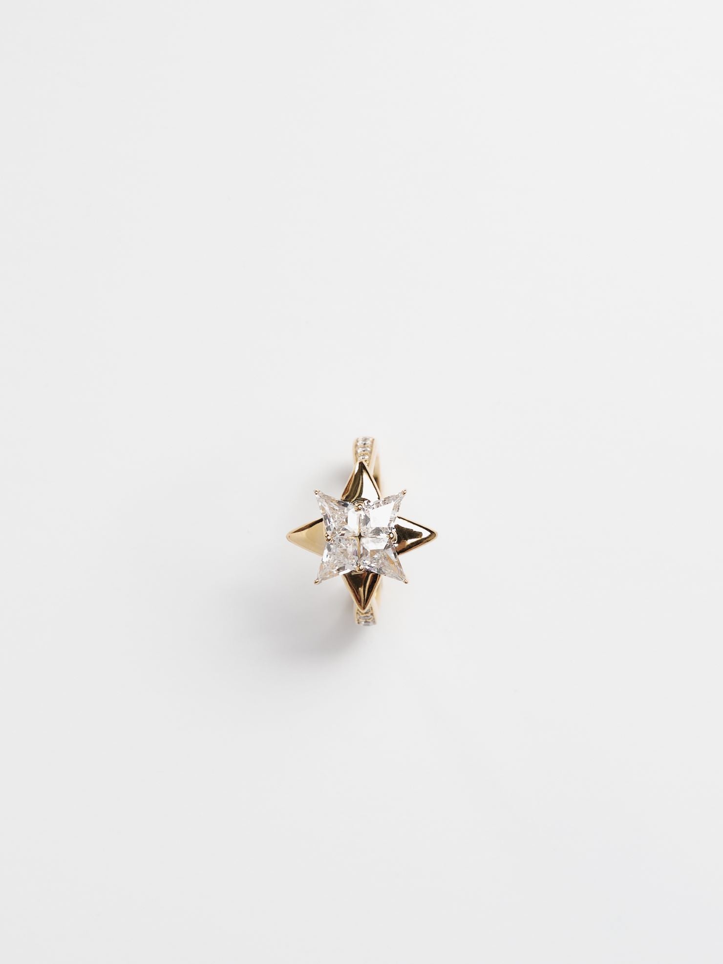 Diamond and gold star ring featuring the signature 11 Juillet Éclat de joie star-shaped motif and a diamond-studded band.