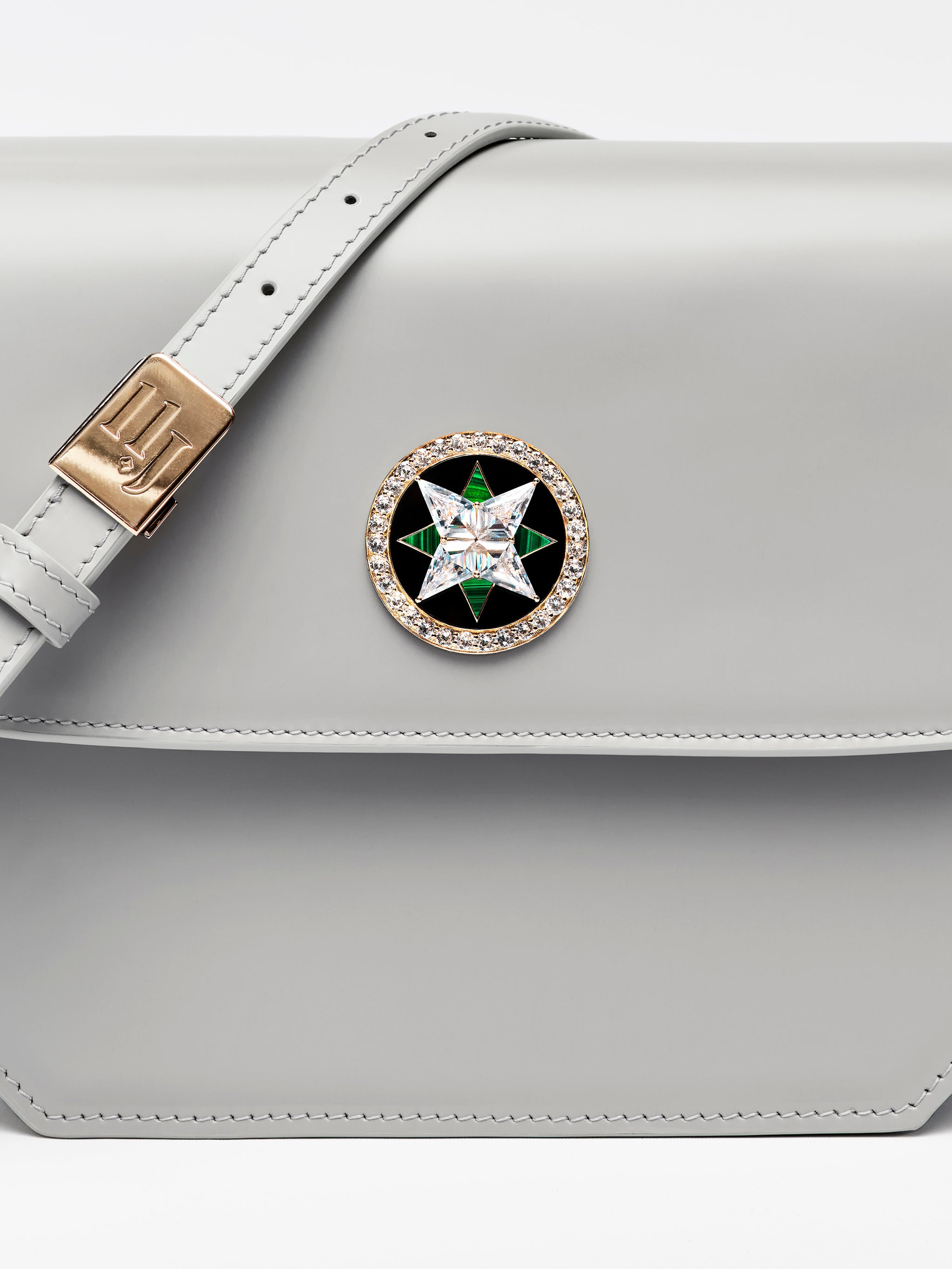- Diamond embellished snap closure