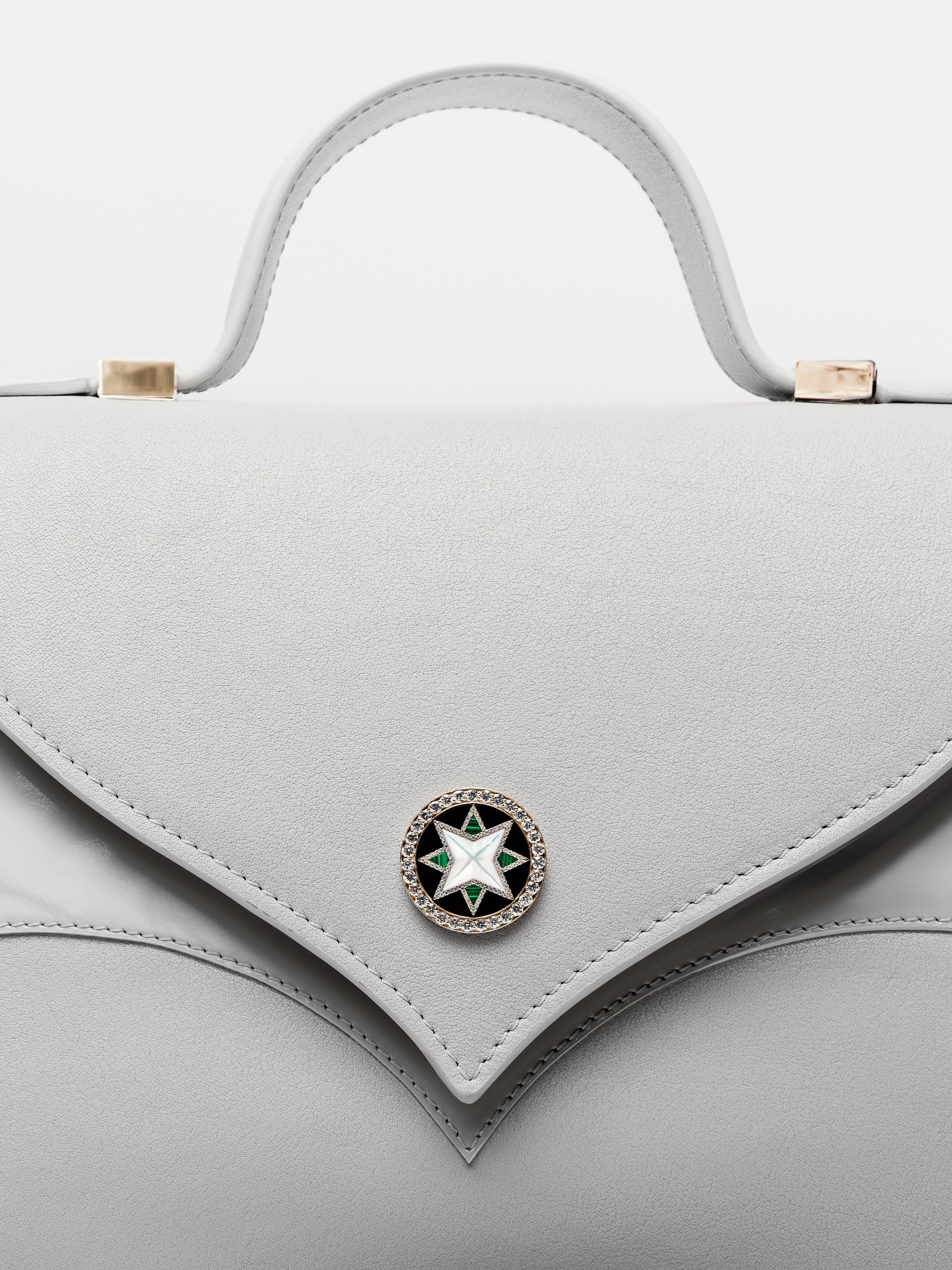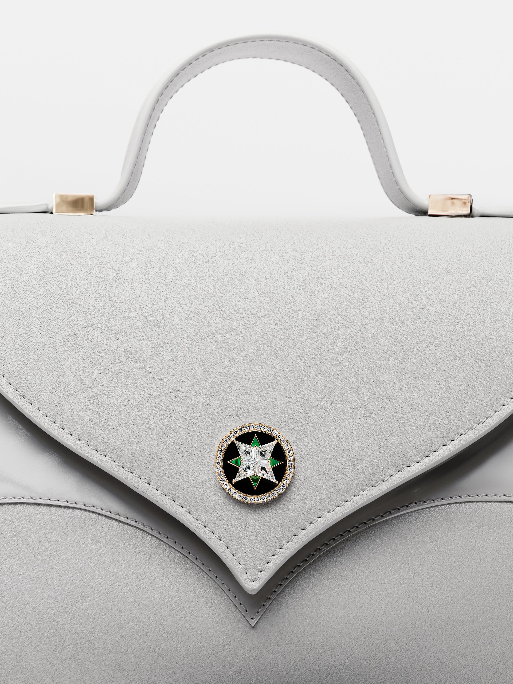 The Mayfair's deftly folded flap brings a ladylike polish to its playful preppy design: always put together, even when off-the-cuff.  Made from full-grain leather, the bag features a top leather handle as well as a long leather strap that can be worn over the shoulder or as a crossbody.  The flap features a delicate petal-inspired design and provides the perfect setting for the iconic Éclat de Joie medallion.